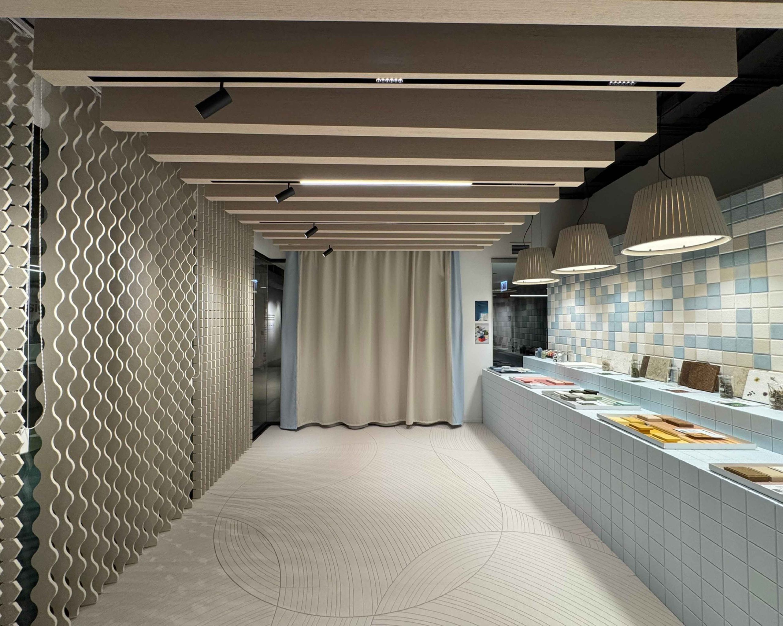 Noren® je akustična pregrada koja reinterpretira japansku tradiciju tekstilnih zavjesa u suvremenom kontekstu. Lagane, viseće plohe stvaraju osjećaj prozračnosti i fluidnosti, a istovremeno poboljšavaju akustiku prostora. Noren® elementima moguće je diskretno zonirati prostore – urede, lounge zone ili javne interijere – bez teških zidova ili fiksnih barijera. Tekstilni izgled i paleta Archisonic® boja omogućuju arhitektima slobodu oblikovanja: od smirenih, neutralnih tonova do odvažnih kombinacija koje prostoru daju identitet.